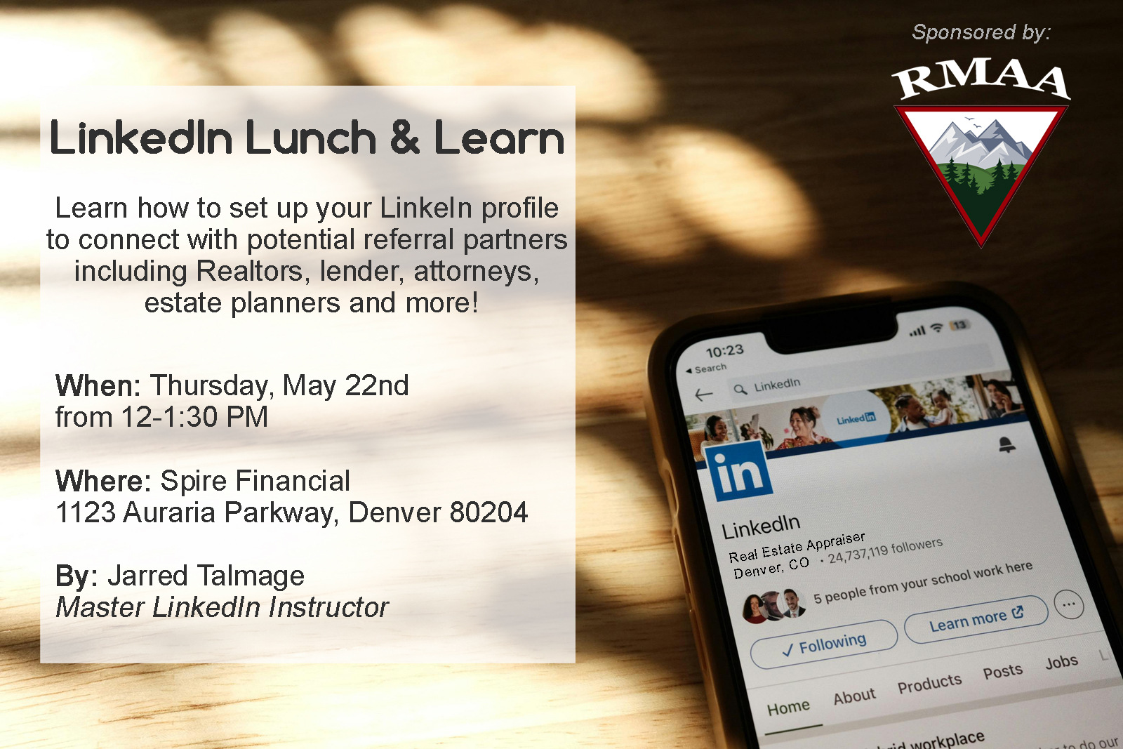 Learn how to optimize your LinkedIn profile to attract leads and grow your network in this interactive workshop for real estate appraisers. Learn how to optimized your profile and connect with your potential target clients including Realtors, attorneys, estate planners, lenders and more! Lunch will be provided.